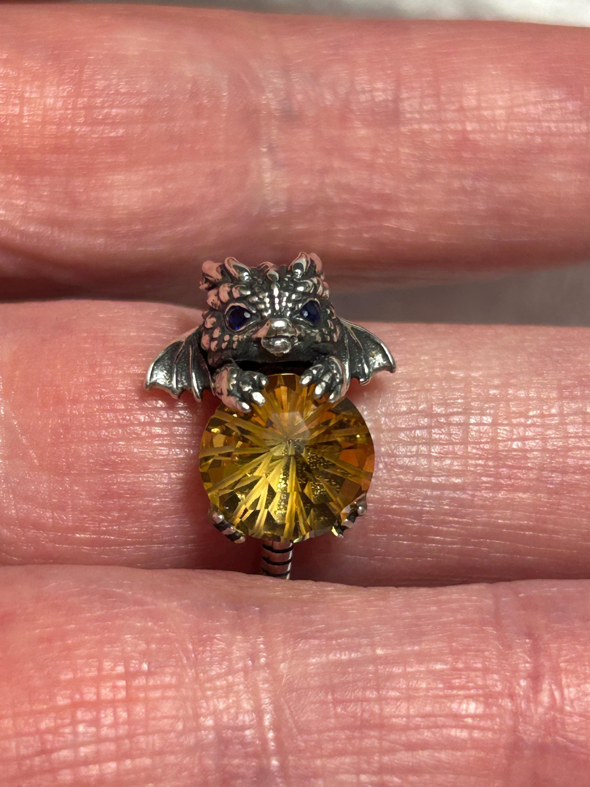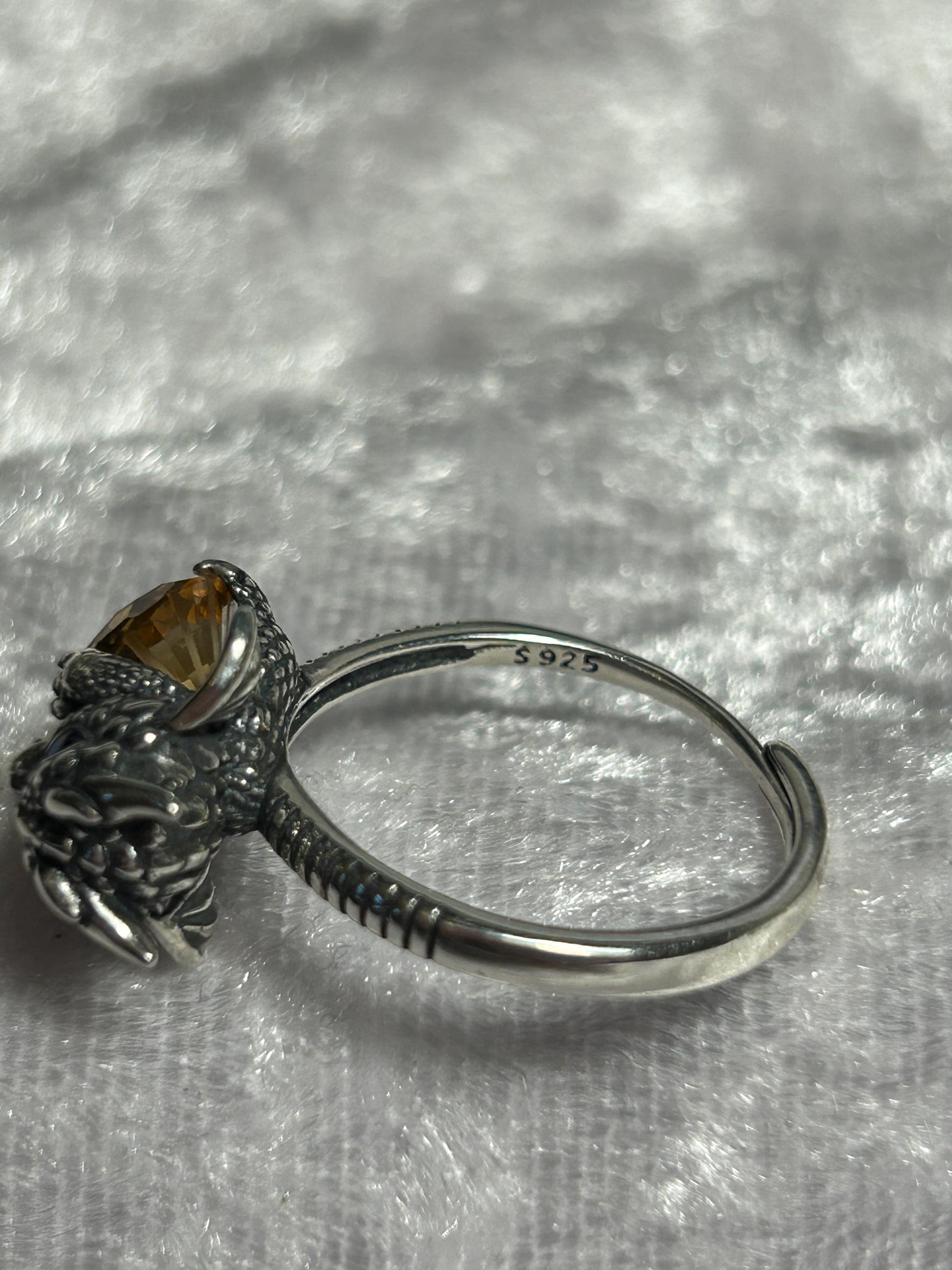 Baby Dragon 925 Silver Ring: Citrine Gemstone, Sapphire Eyes, Adjustable