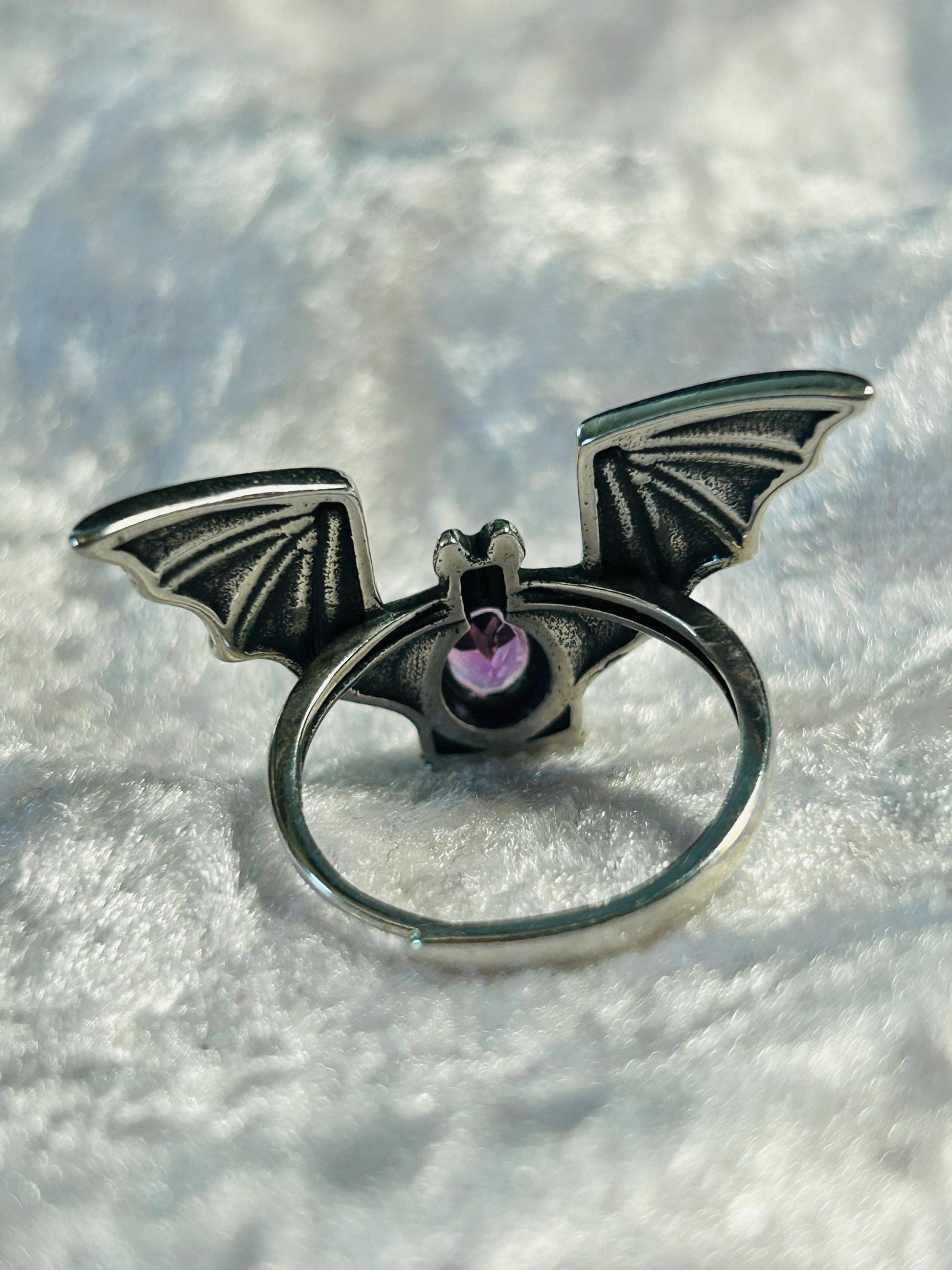 Bat Ring With Amethyst Gemstone - 925 Silver Ring - Adjustable - Supplied In Gift Box