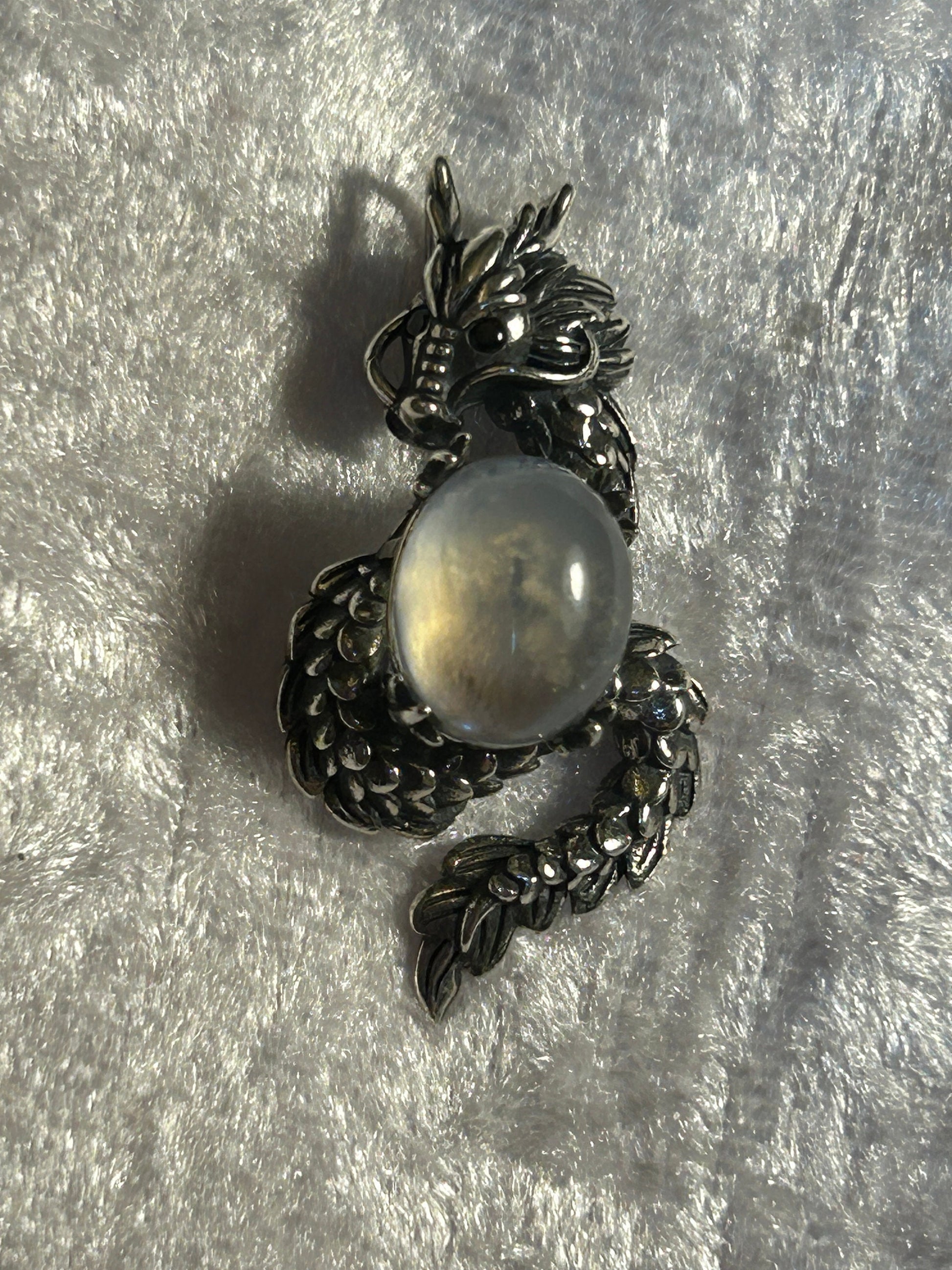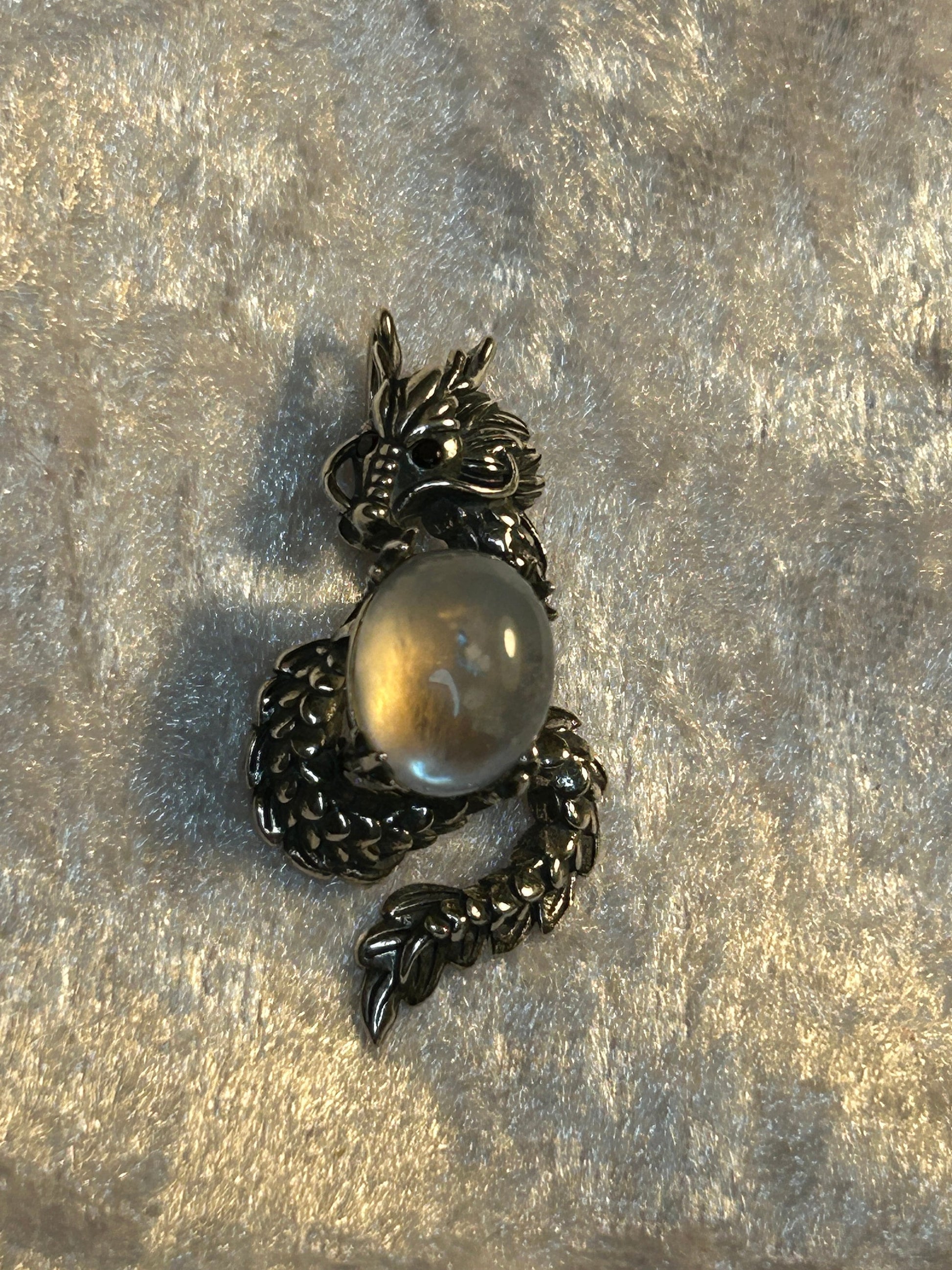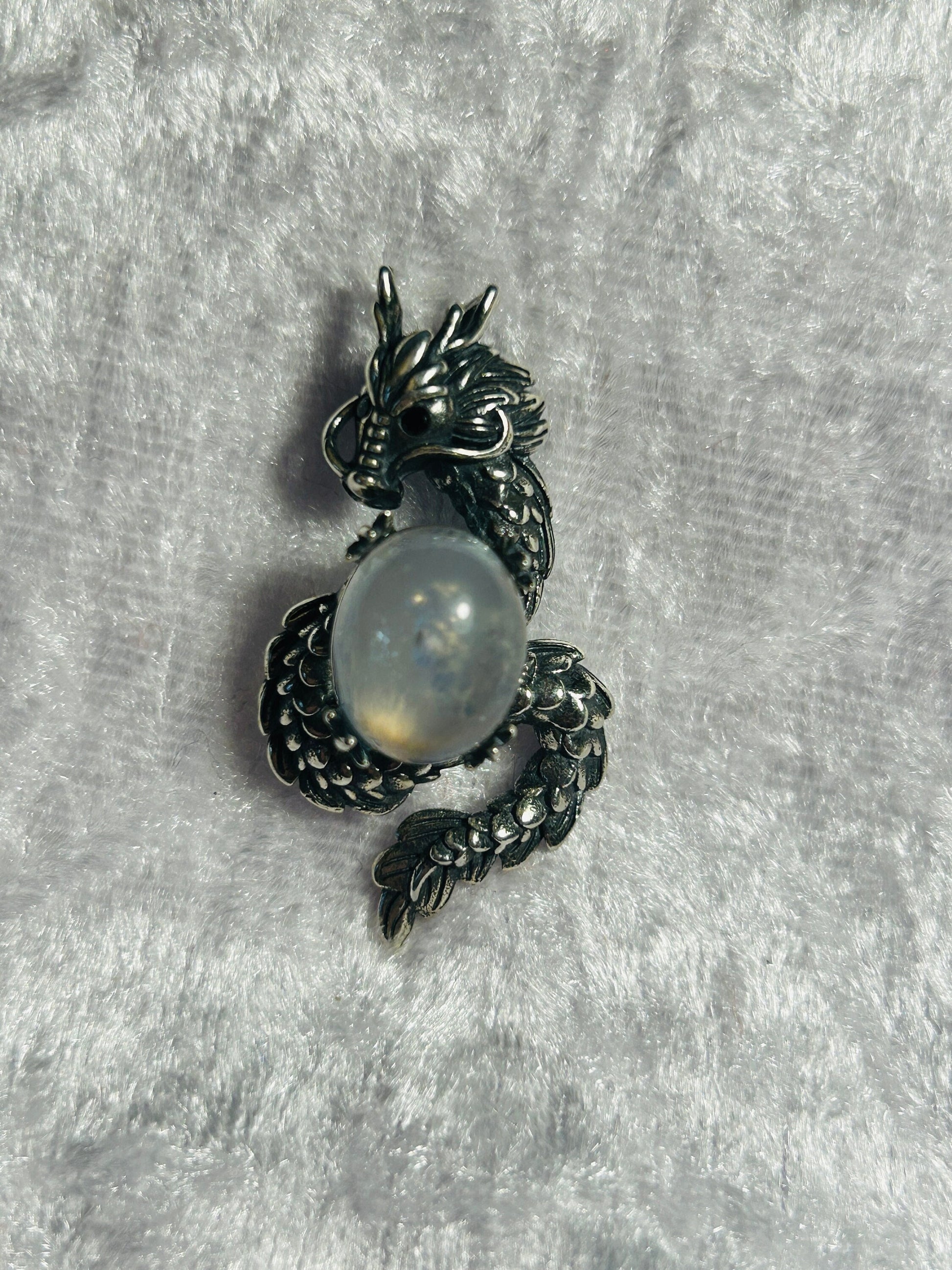 Dragon Pendant Made of 925 Silver With Labradorite Crystal Gemstone - Supplied In Gift Box