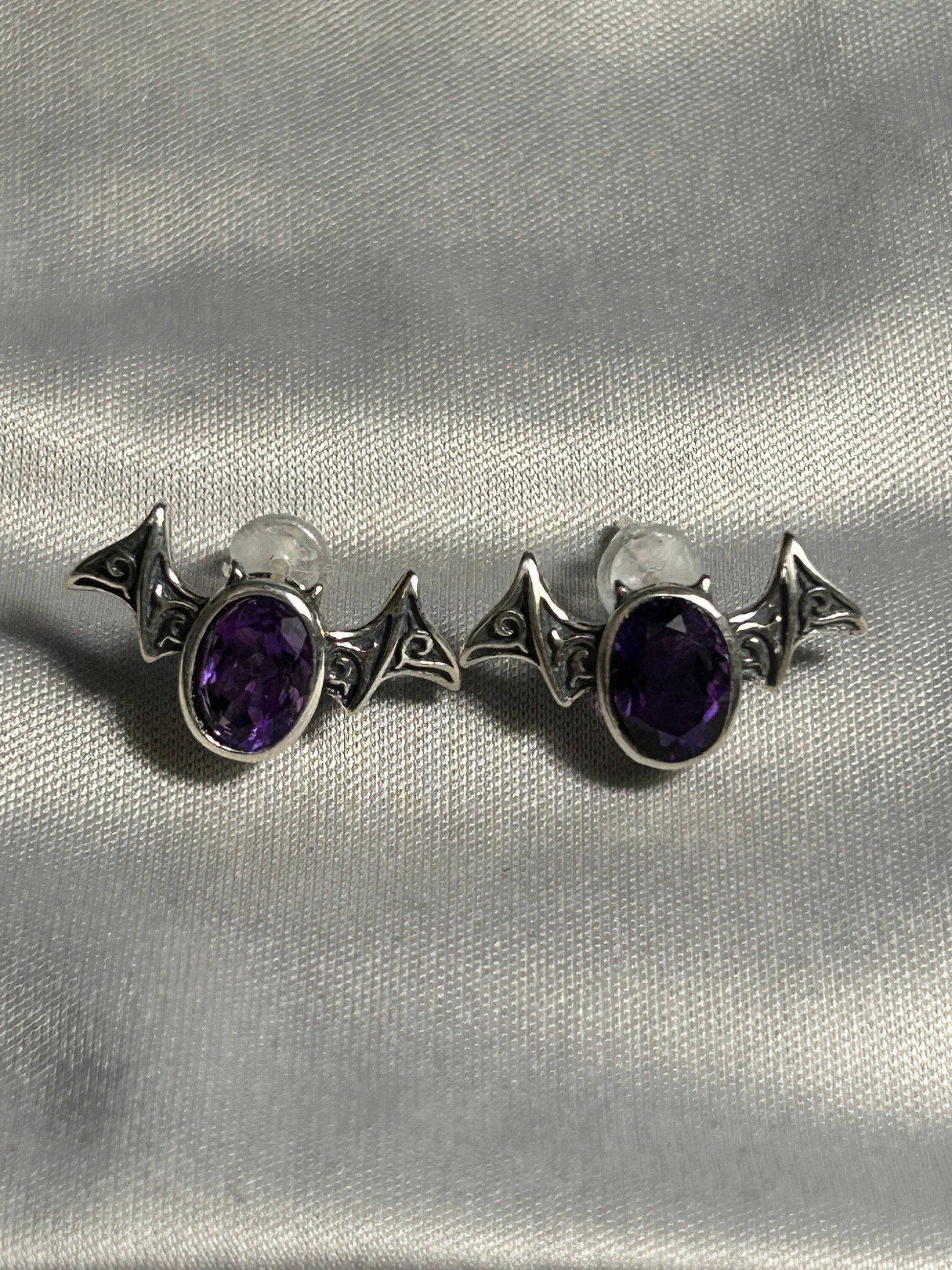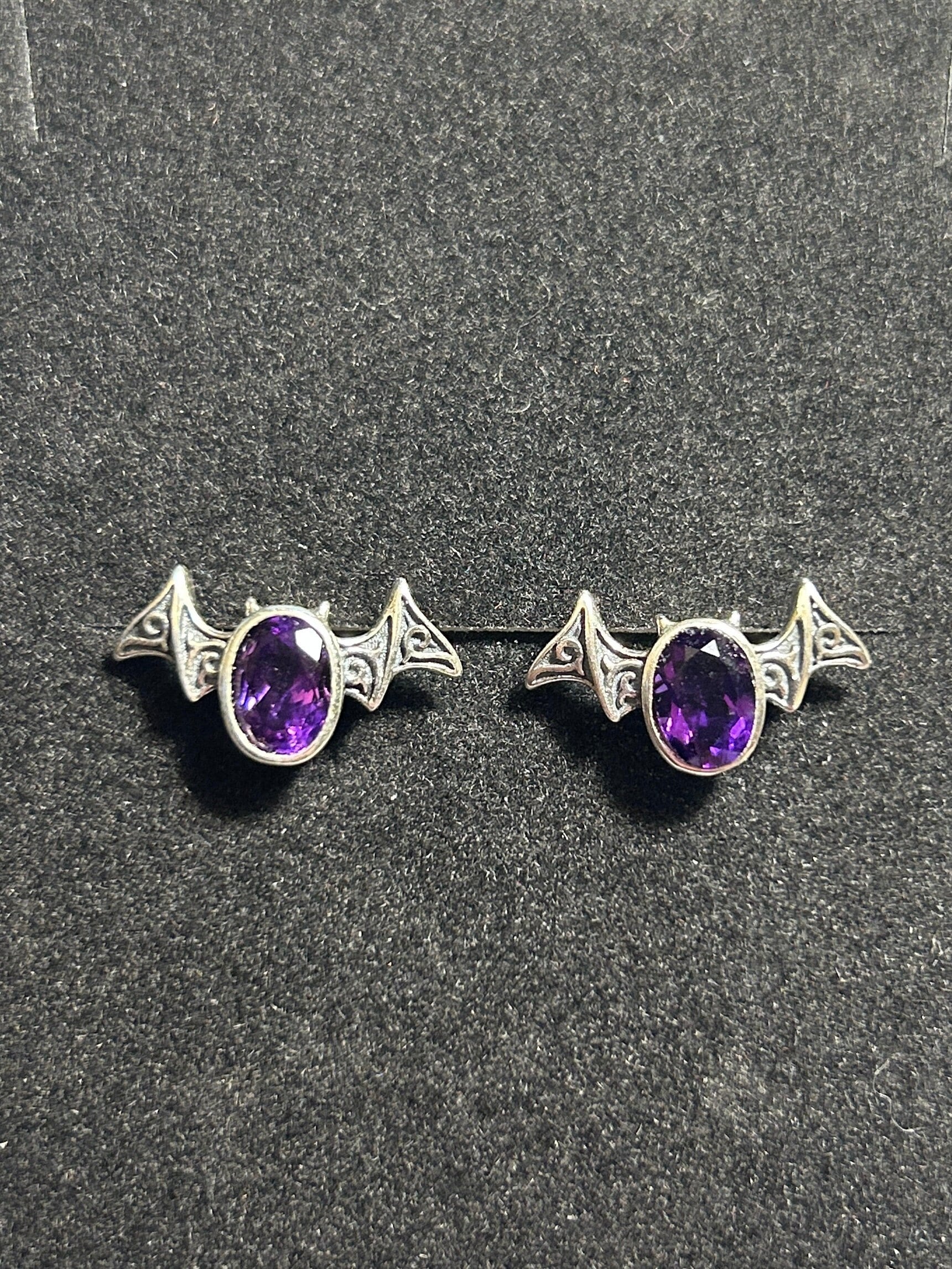 Pair Bat Earrings With Amethyst Gemstone - 925 Silver Earrings - Supplied In Gift Box