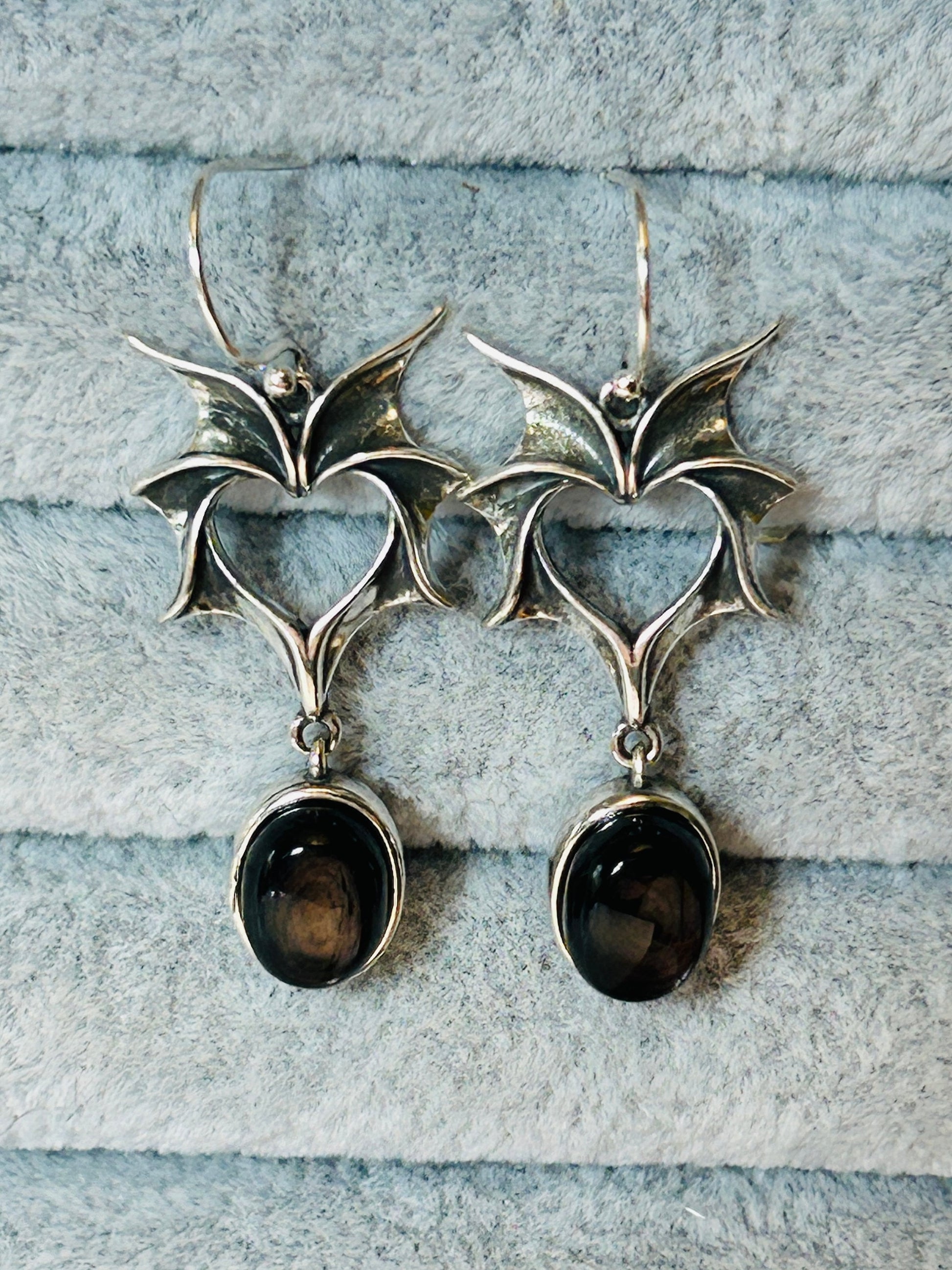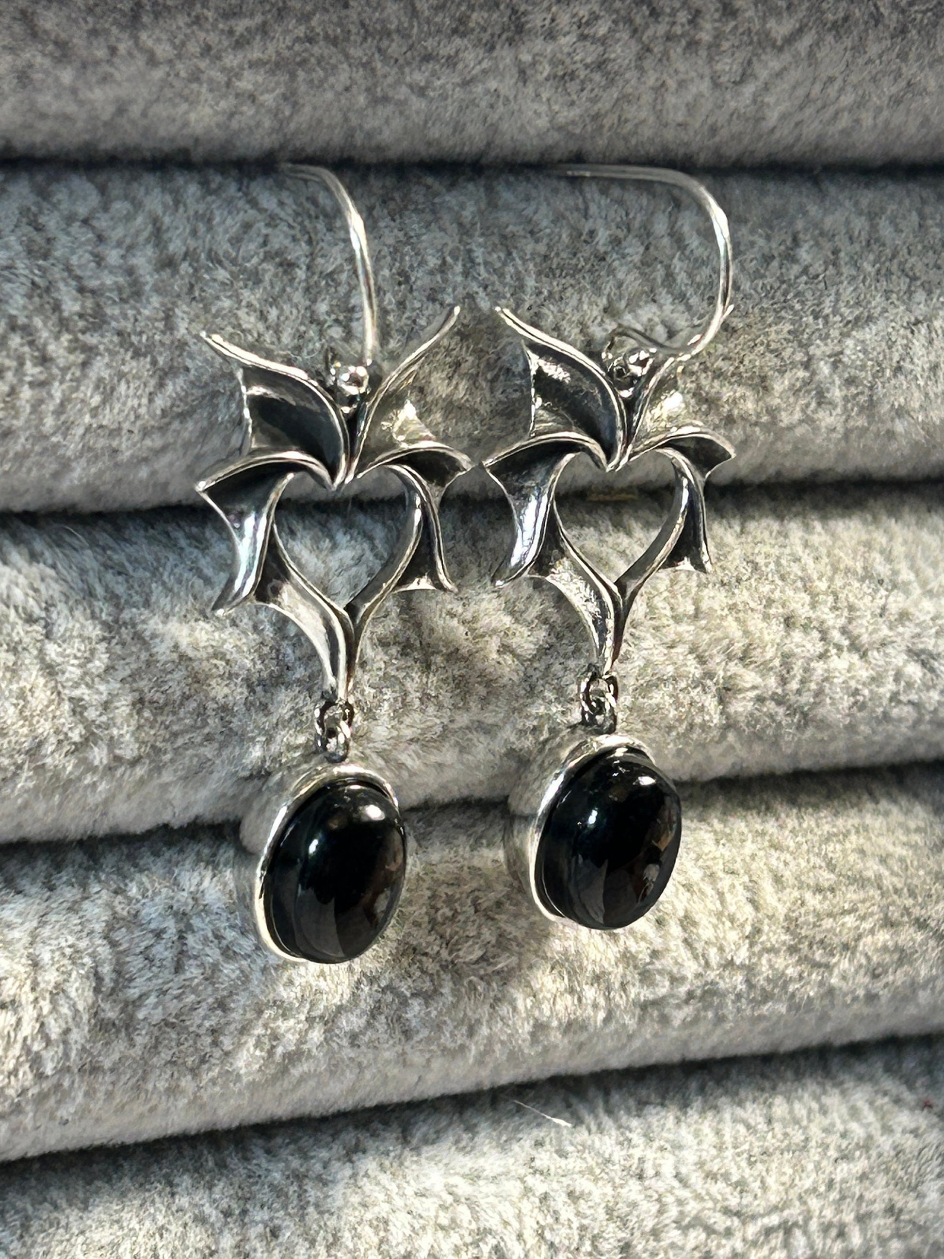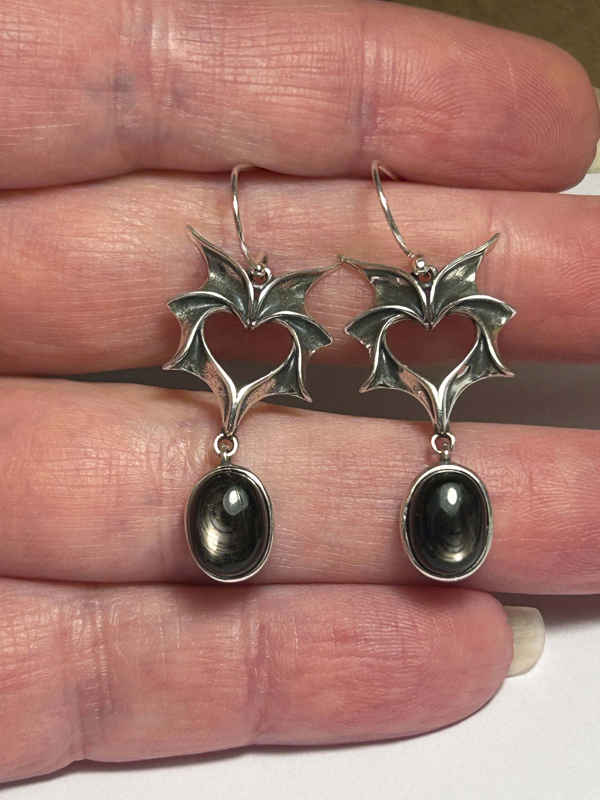 Pair Bat Earrings With Hypersthene Gemstone - 925 Silver Dangle Earrings - Giftboxed